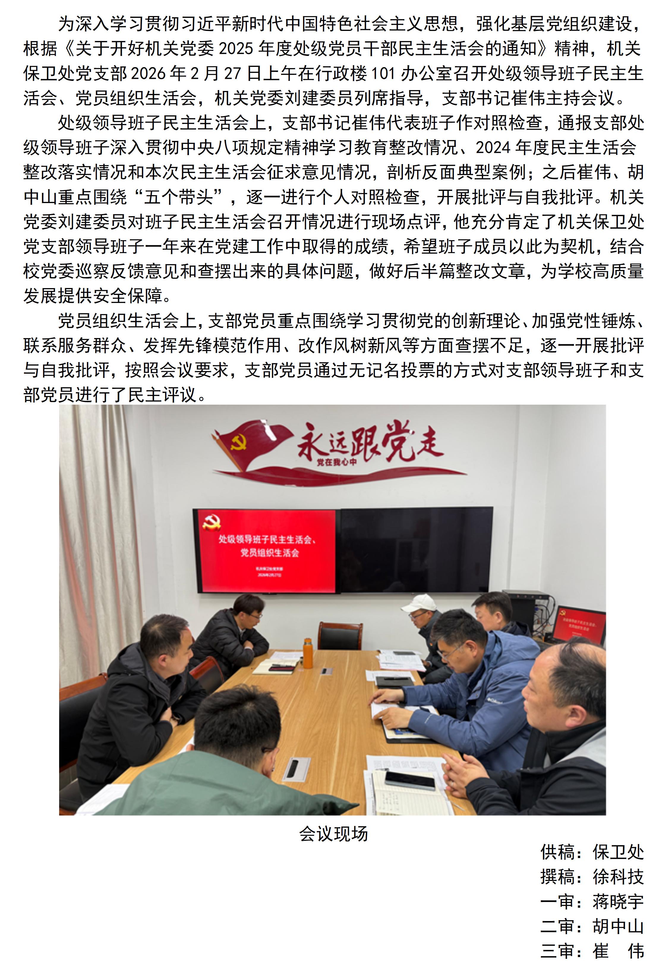机关保卫处党支部召开处级领导班子 民主生活会、党员组织生活会