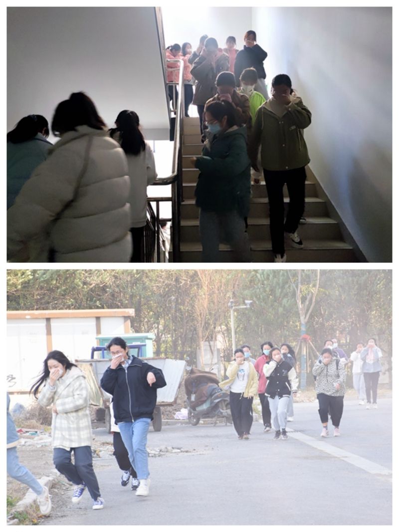 同学们捂住口鼻有序撤离